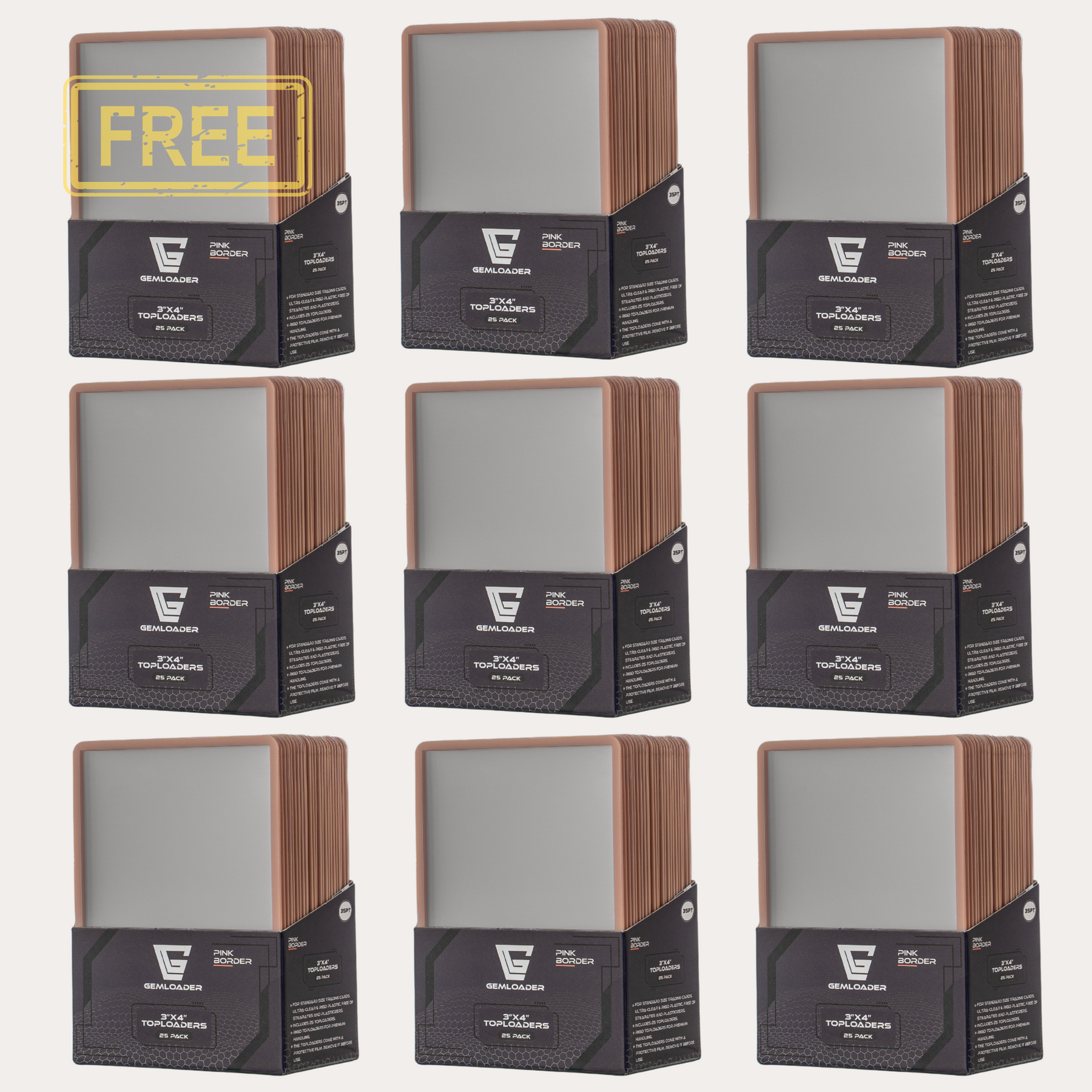 With this bundle of 225 of thehighest quality PINK BORDER 3''X4'' toploadersyou have enough toploaders to fill a Gemloader toploader binder (216 pockets). You get9 packs for the price of 8 packs.