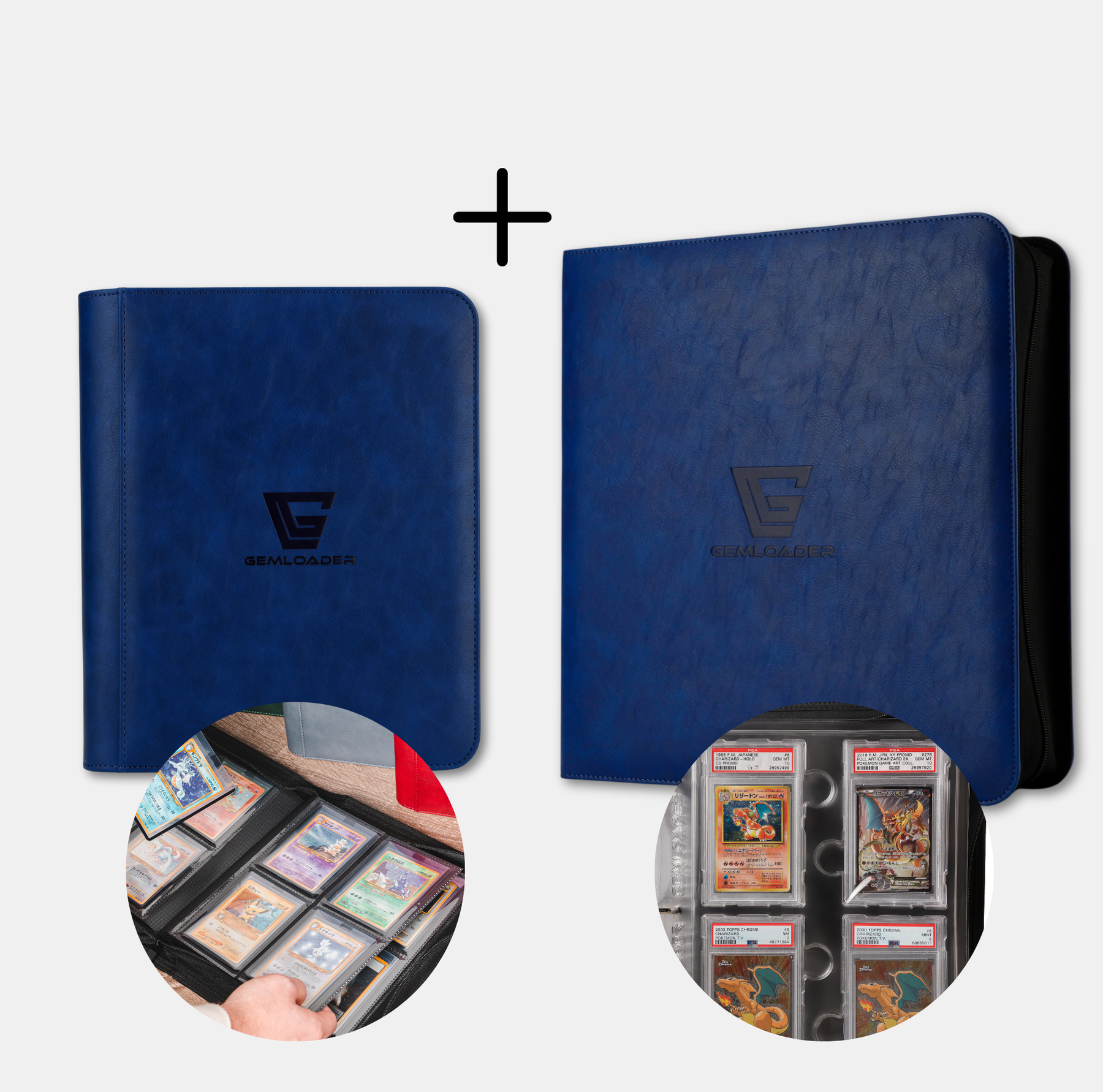 This exclusive bundle combines the luxury of a graded card binder with the practicality of a toploader binder, both in a stunning Blue finish.